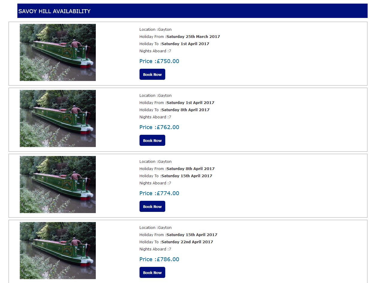 You are now using the new Canal Cruising web site! It should be much the same as the old one but takes into account the changes in the way the bookings are now being handled. For example, the Bookings page has a table showing what has been booked and what is available as before, along with the prices, but the bookings process has been changed. The site will also work much better on phones and tablets. If you have any technical issues with the site please let Tim know by sending an email to secretary@savoyhill.org.uk For techie people - we have moved from Microsoft servers, ASP3 pages and Microsoft Access database to Linux, PHP and the on-line MySQL database.